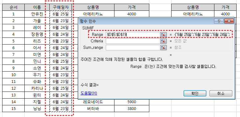 sumif 함수